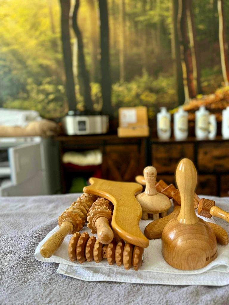 – masáž nohou s použitím dřevěného kolíku ke stimulaci reflexních a akupresurních bodů